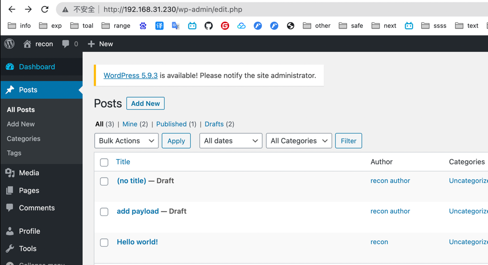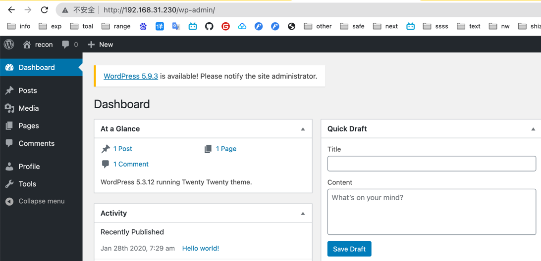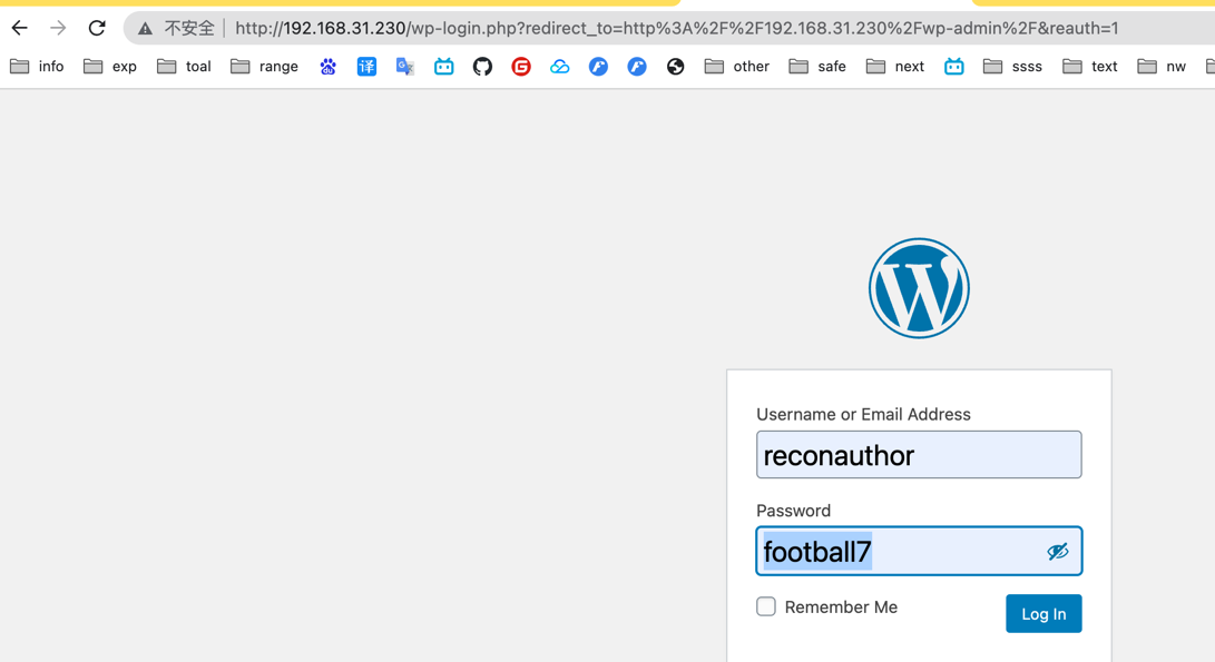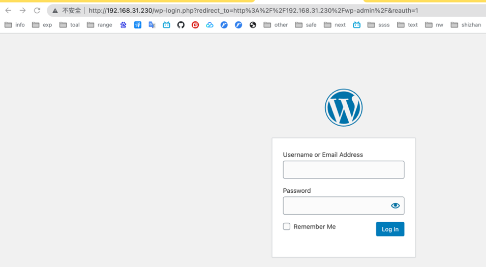 -> 敏感网址:http://192.168.31.230/wp-login.php?redirect_to=http%3A%2F%2F192.168.31.230%2Fwp-admin%2F&reauth=1
