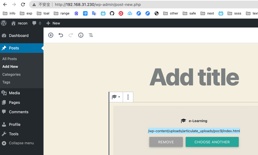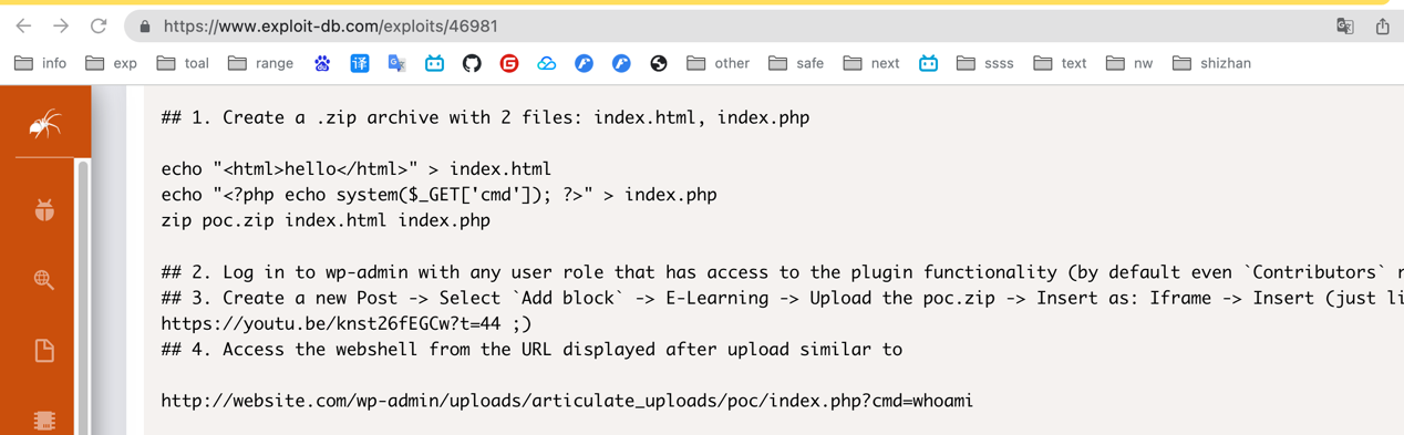 wordpress 后台上传文件 poc:https://www.exploit-db.com/exploits/46981
