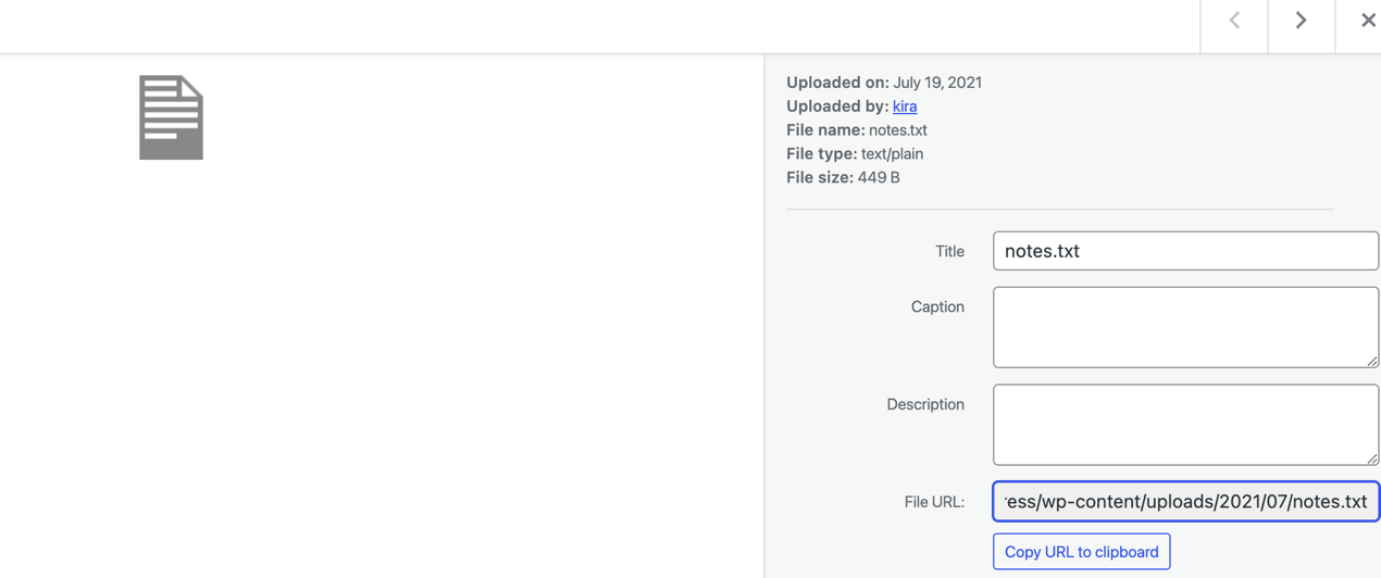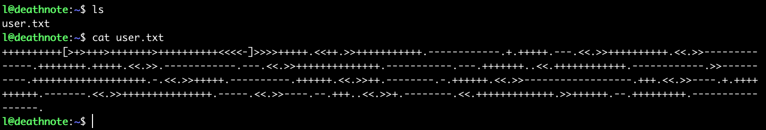 | 1 | wget http://deathnote.vuln/wordpress/wp-content/uploads/2021/07/user.txt |