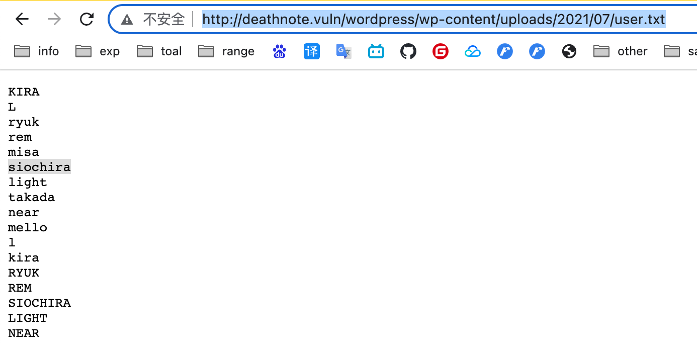 http://deathnote.vuln/wordpress/wp-content/uploads/2021/07/notes.txt