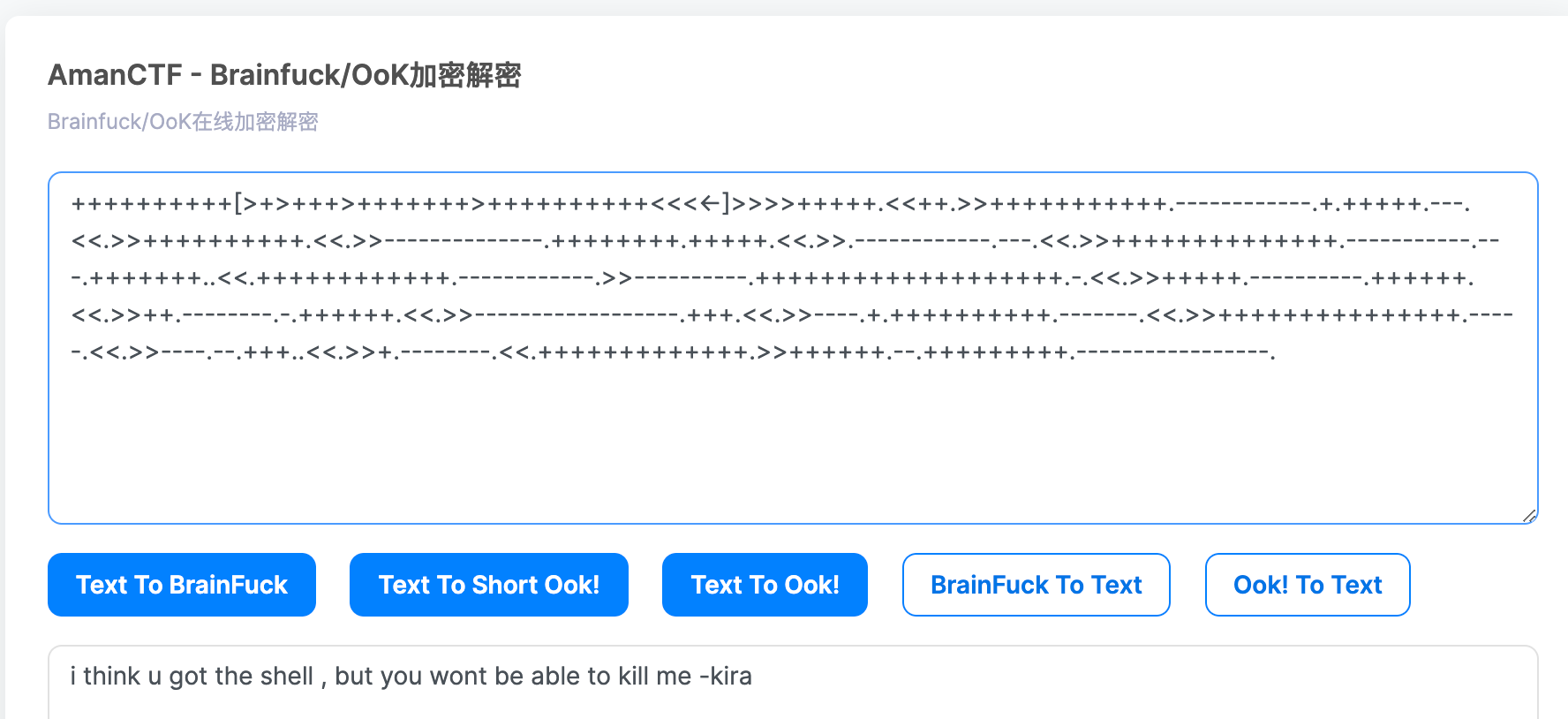 这是 brainfuck 加密,在线解密 https://ctf.bugku.com/tool/brainfuck