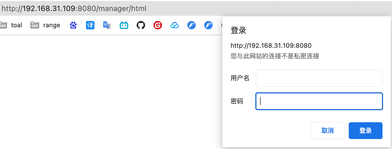 http://192.168.31.109/manager/html 登陆界面,可进行爆破