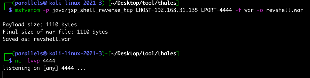 | 1 | 使用msf生成一个反弹shell的war文件木马 |